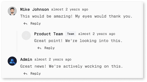 Merge duplicates, moderate spam, and track engagement metrics. Keep boards clean and understand what features drive retention.